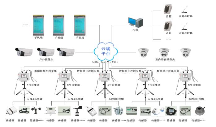 本系統(tǒng)主要由云平臺(tái)無線數(shù)劇采集器、傳感器、、視頻采集系統(tǒng)、圖片拍照系統(tǒng)、語音與視頻交互系統(tǒng)、云平臺(tái)組成。后臺(tái)數(shù)據(jù)處理系統(tǒng)及信息監(jiān)控管理云平臺(tái)、數(shù)據(jù)采集器、傳感器、視頻監(jiān)控系統(tǒng)、無線傳輸系統(tǒng)組成。監(jiān)測(cè)子站集成;數(shù)據(jù)平臺(tái)是一個(gè)互聯(lián)網(wǎng)架構(gòu)的網(wǎng)絡(luò)化平臺(tái),具有對(duì)各子站的監(jiān)控功能以及對(duì)數(shù)據(jù)的報(bào)警處理、記錄、查詢、統(tǒng)計(jì)、報(bào)表輸出等多種功能。