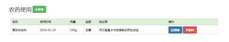 5、農(nóng)藥使用流程。名稱、類型、品牌、供應商、使用日期、使用方法、廠家資質(zhì)、銷售單位資質(zhì)。