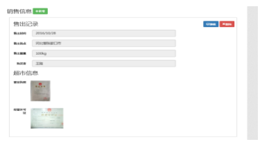 7、銷售信息。超市信息(營業(yè)執(zhí)照、經(jīng)營許可證)、售出記錄(時間、地點、購買者信息)。