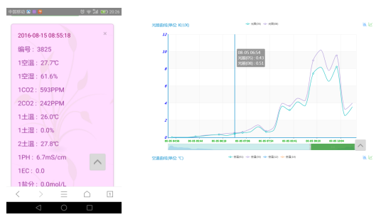 10、通過PC機和手機實時查看各個地點的空氣溫度、空氣濕度、二氧化碳、光照強度、土壤水分、地溫等農(nóng)業(yè)環(huán)境參數(shù)監(jiān)測數(shù)據(jù)。(可不使用)