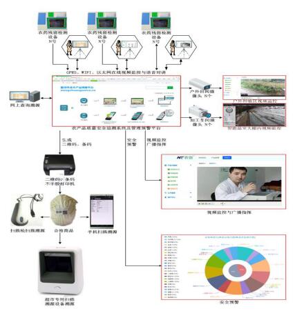本平臺由若干個子平臺組成,分布于農(nóng)產(chǎn)品生產(chǎn)基地、農(nóng)產(chǎn)品批發(fā)市場、農(nóng)產(chǎn)品加工企業(yè)、超市、各單位食堂,每個子平臺有農(nóng)藥殘留速測儀、PC電腦、系統(tǒng)PC端軟件組成。都有獨(dú)立的用戶名和密碼。子平臺的所有數(shù)據(jù)都可對接立刻同步上傳給XX?。ㄊ?、縣)《農(nóng)產(chǎn)品安全追溯系統(tǒng)平臺》。
