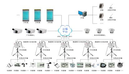 本系統(tǒng)主要由云平臺無線數(shù)劇采集器、傳感器、應用終端、視頻采集系統(tǒng)、圖片拍照系統(tǒng)、語音與視頻交互系統(tǒng)、云平臺組成。后臺數(shù)據(jù)處理系統(tǒng)及信息監(jiān)控管理云平臺、數(shù)據(jù)采集器、傳感器、視頻監(jiān)控系統(tǒng)、無線傳輸系統(tǒng)組成。監(jiān)測子站集成;數(shù)據(jù)平臺是一個互聯(lián)網(wǎng)架構(gòu)的網(wǎng)絡化平臺,具有對各子站的監(jiān)控功能以及對數(shù)據(jù)的報警處理、記錄、查詢、統(tǒng)計、報表輸出等多種功能。
