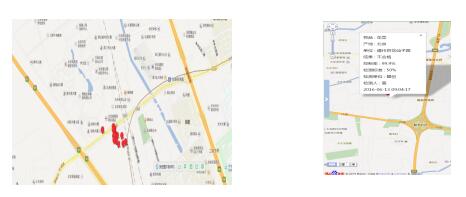 8、GIS地圖生成:利用檢測設備內(nèi)置的GPS模塊,實現(xiàn)衛(wèi)星定位數(shù)據(jù)捆綁測試數(shù)據(jù)信息,實施GIS地圖定點監(jiān)控每個檢測點的位置信息,監(jiān)測者可在其衛(wèi)星定位圖標上點擊位置坐標查看該檢測點測試數(shù)據(jù)相關(guān)索引信息。