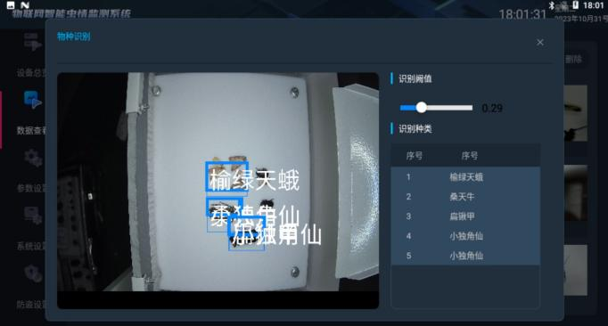 3、七寸彩色觸摸屏幕,內(nèi)置安卓智能操作系統(tǒng),并安裝《AI害蟲自動識別系統(tǒng)》??勺詣幼R別昆蟲種類并計數(shù)同時上傳給服務(wù)器。