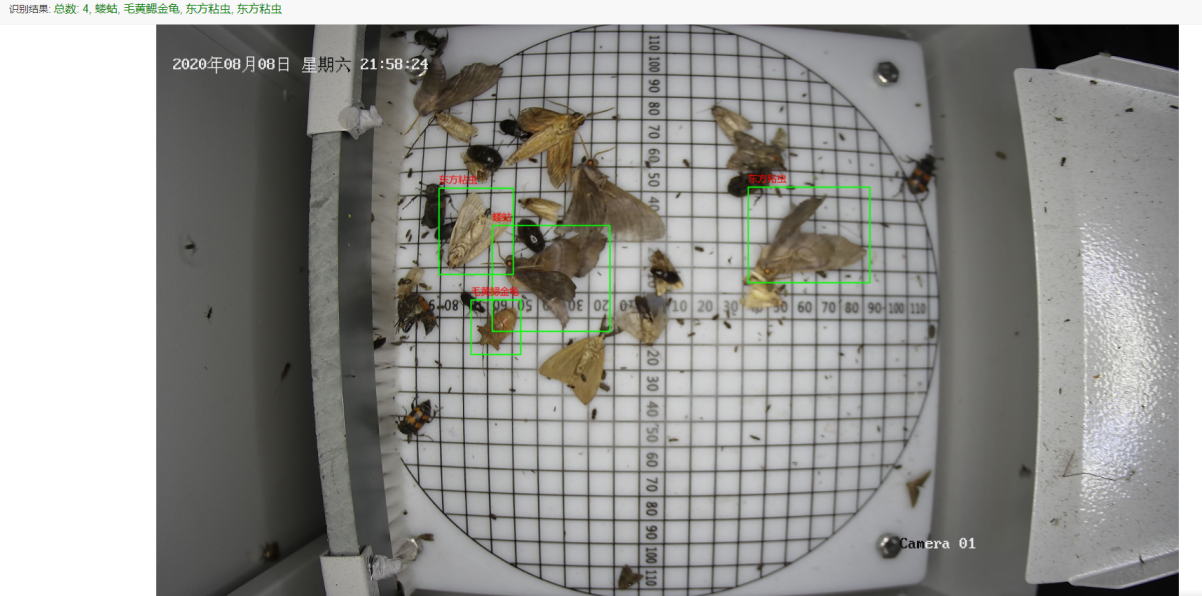 8、可配備高清板載攝像頭(和手機(jī)相同),可定時自動拍照、遠(yuǎn)程直接拍照等方式對蟲害情況進(jìn)行拍照查驗。對于微光環(huán)境還可以配備板載高亮度拍照補(bǔ)光燈進(jìn)行拍照補(bǔ)光。遠(yuǎn)程清晰查看現(xiàn)場害蟲飛行和死亡蟲體實景,供管理人員做出蟲類及數(shù)量詳細(xì)分析能有效做出預(yù)警措施。